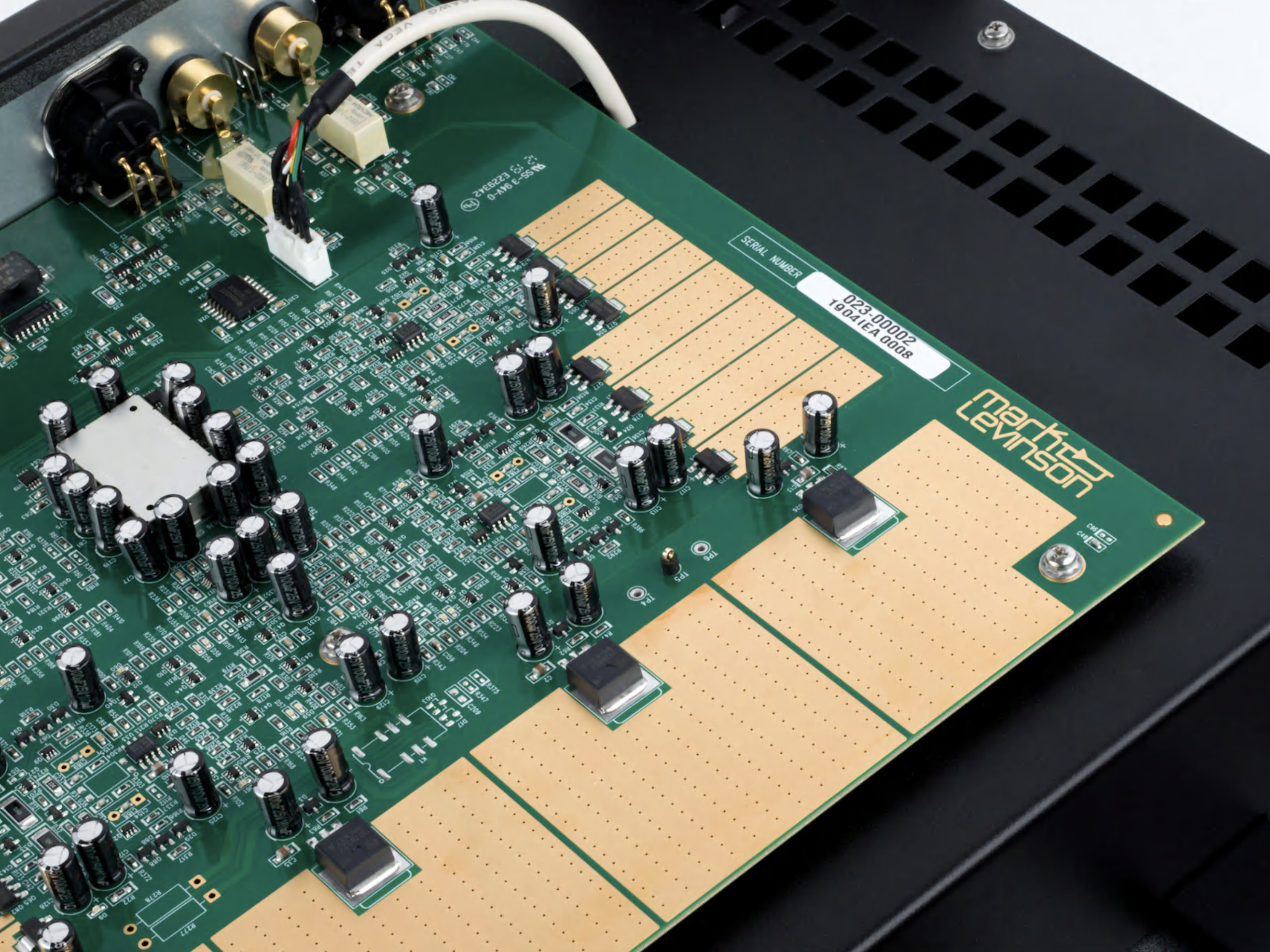 1인치 두께의 전면 알루미늄 패널에는 비드 블래스트 처리와 아노다이징 처리가 되어 있으며, 마크레빈슨 특유의 큰 레드 닷 LED가 적용된 디스플레이와 매치된다. 후면 단자는 단자 연결이 잦은 특성을 고려해 긁힘이 적은 글래스 패널로 덮여 있어서 산뜻해보이며, 단자 역시 견고하고 사용감이 우수하다.