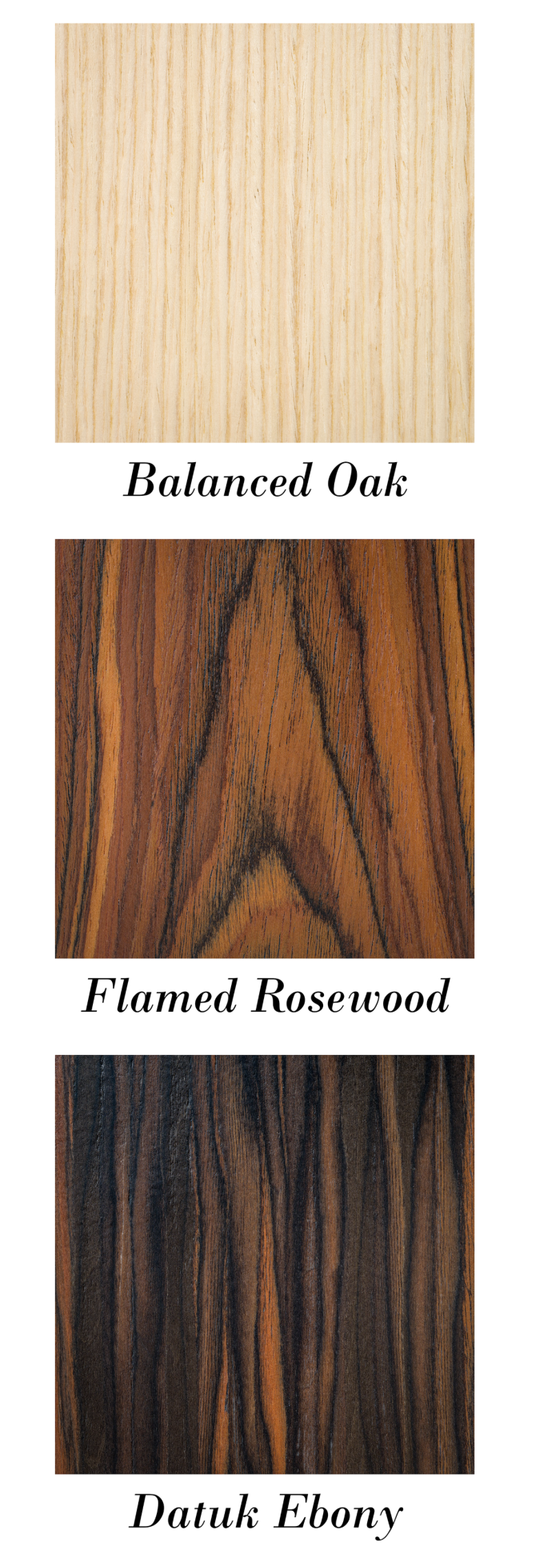 스피커의 측면을 나무 소재로 적용함으로써 미적으로도 설치 공간에 더 잘 어울리게 되었다. 로즈우드, 라이트 오크, 에보니 이렇게 세 가지 마감을 선택할 수 있다. 다만 디센트 서브우퍼는 블랙 단일 마감으로 제공된다.